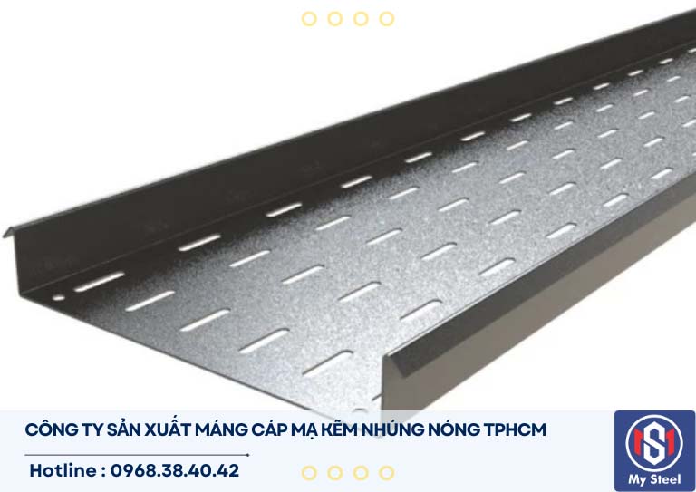 - Máng cáp mạ kẽm nhúng nóng đột lỗ là sản phẩm được gia công đột lỗ nhỏ trên bề mặt giúp thông gió, thoát nhiệt cho dây cáp điện, giảm trọng lượng và dễ dàng cố định cáp bằng dây rút. Đây là loại phổ biến nhất cho hệ thống cáp điện và cáp điều khiển.